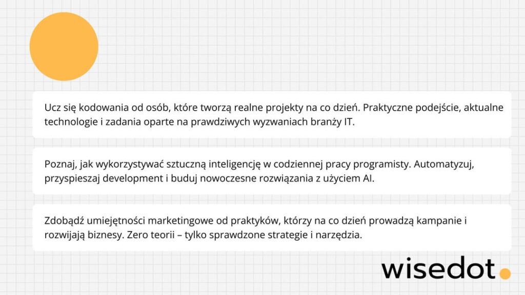 Praktyczne kursy z programowania i marketingu cyfrowego online. Uczysz się w swoim tempie, na realnych przykładach.